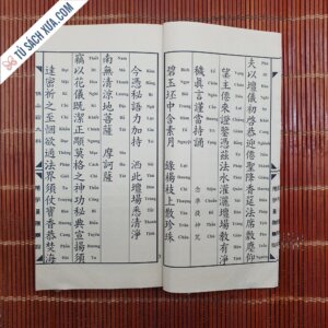 Sách được khâu thủ công theo lối cổ, giấy xuyến chỉ hoặc giấy trắng cổ gấp đôi, đọc ngược từ phải sang, khâu gáy bằng chỉ dù, quét keo, tem sách chống xước, mực in chống nước không phai màu, số lượng chỉ có vài cuốn.